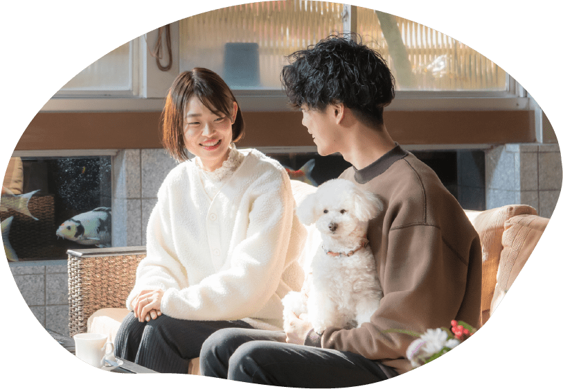 お部屋でワンちゃんと一緒にお食事を楽しむことができます。美味しいお料理をワンちゃんとの大切な時間とともにご堪能ください。