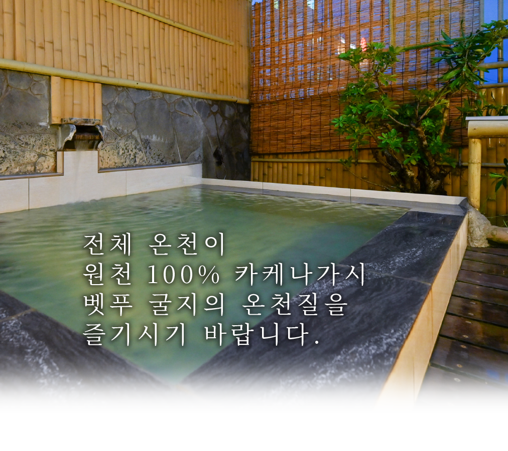 대욕장, 전망노천탕은 천연온천100% 카케나가시(온천수를 한번 사용후 그대로 자연배출)로, 순환은 하지 않습니다.